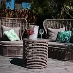 Le Lodge Des Iles D'Or 耶尔提供22间客房并配有日光浴,阳光露台 和游泳池. 此4星级旅馆提供日光浴室 和室外游泳池服务,距离日安半岛不到1.7公里.